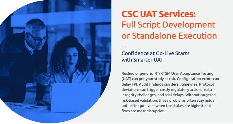 Partnering with CSC has helped improve our digital footprint in the clinical trial efforts. Their in-depth knowledge of clinical supply chains helped reduce hurdles and ensure a smooth flow of materials. This efficiency allowed for a more streamlined trial process, enabling us to explore additional solutions with CSC and ultimately, improve trial quality.